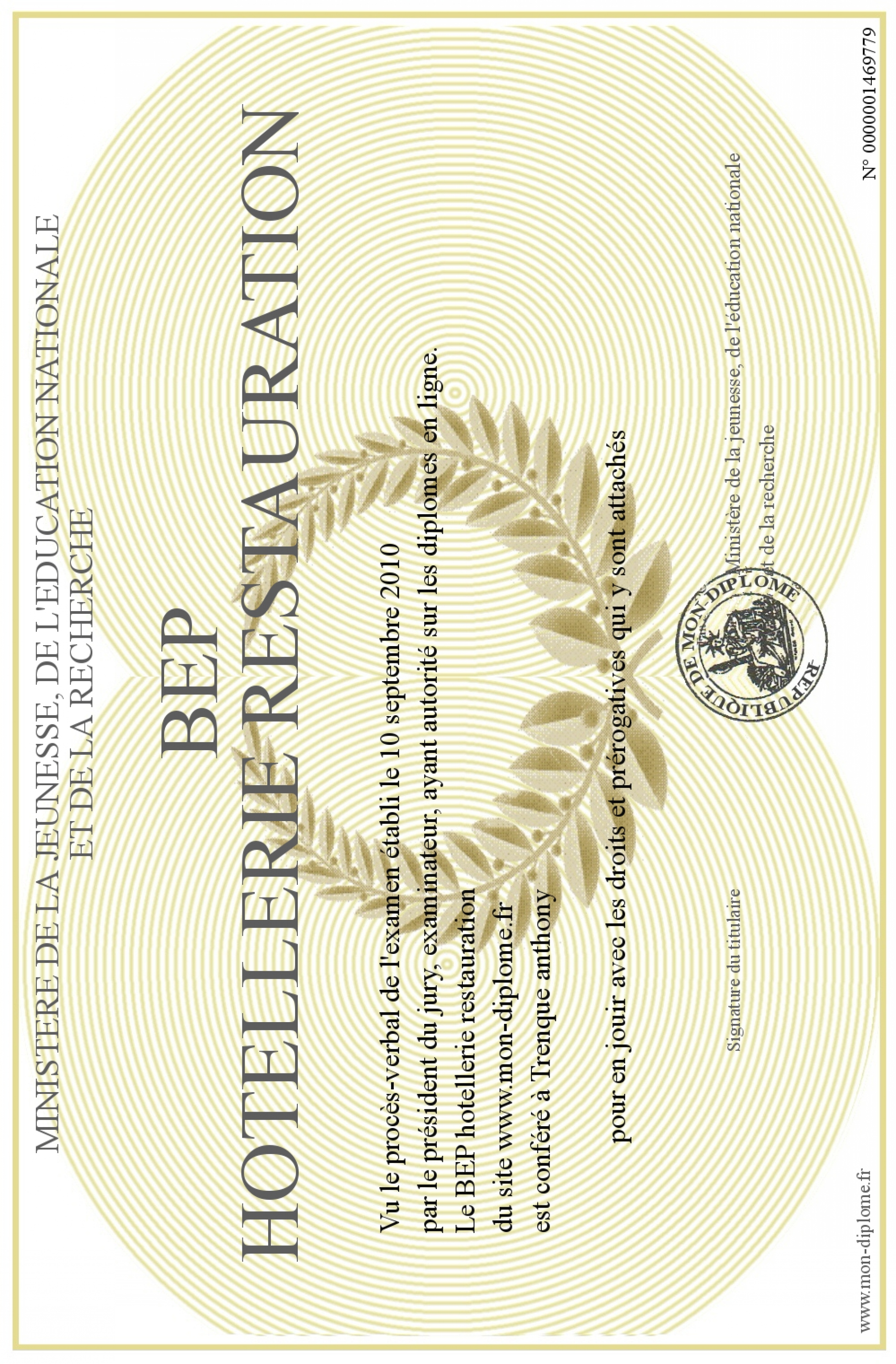 Envoyez par email votre BEP hotellerie restauration personalisé