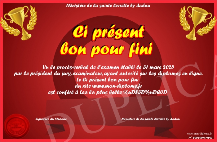 Envoyez par email votre Ci présent bon pour fini personalisé