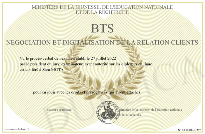 Envoyez par email votre BTS Négociation et Digitalisation de la Relation Clients personalisé
