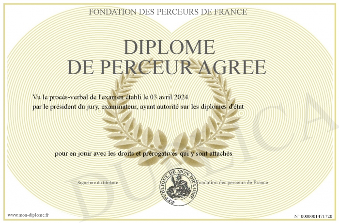 Envoyez par email votre Diplome de perceur agréé personalisé