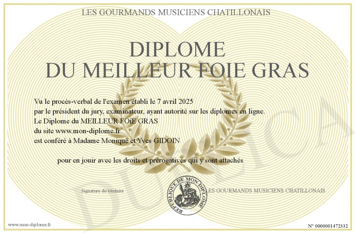 Envoyez par email votre Diplôme du MEILLEUR FOiE GRAS personalisé