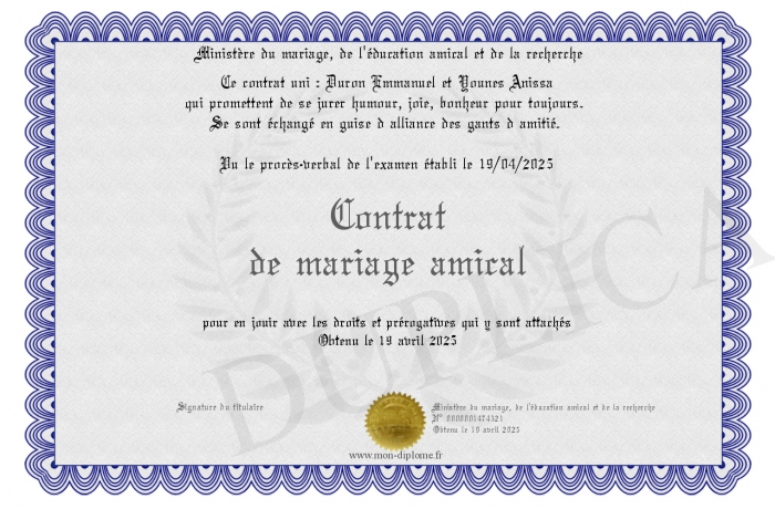 envoyé par le Ministère du mariage, de l'éducation amical-et de la recherche !