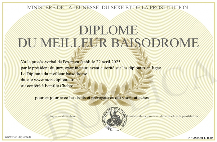 Envoyez par email votre Diplôme du meilleur baisodrôme personalisé