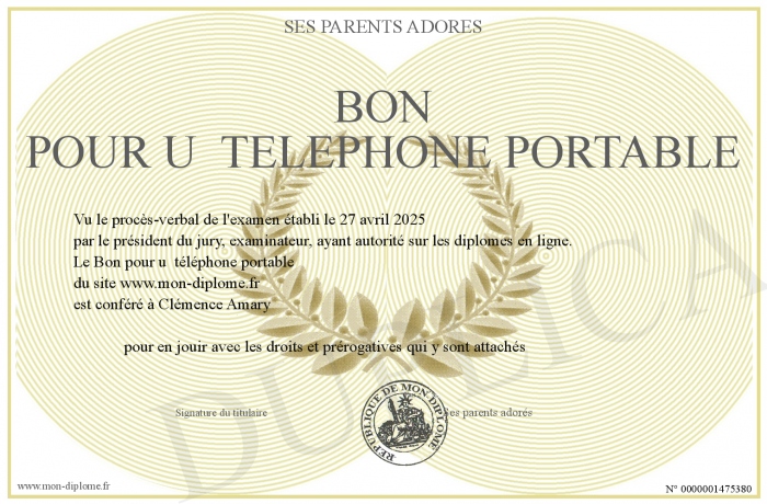 Envoyez par email votre Bon pour u téléphone portable personalisé