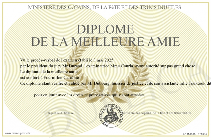 Envoyez par email votre diplôme de la meilleure amie personalisé