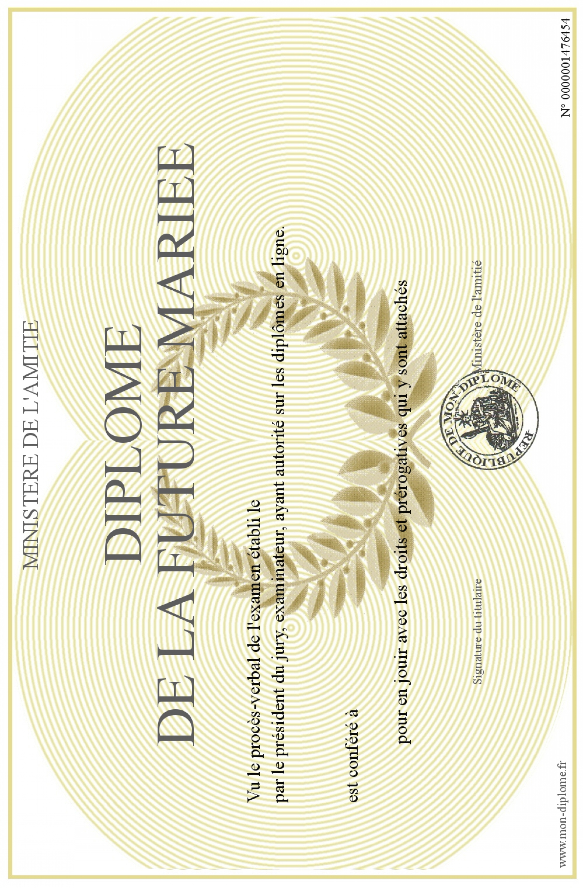 Envoyez par email votre Diplôme de la future mariée personalisé