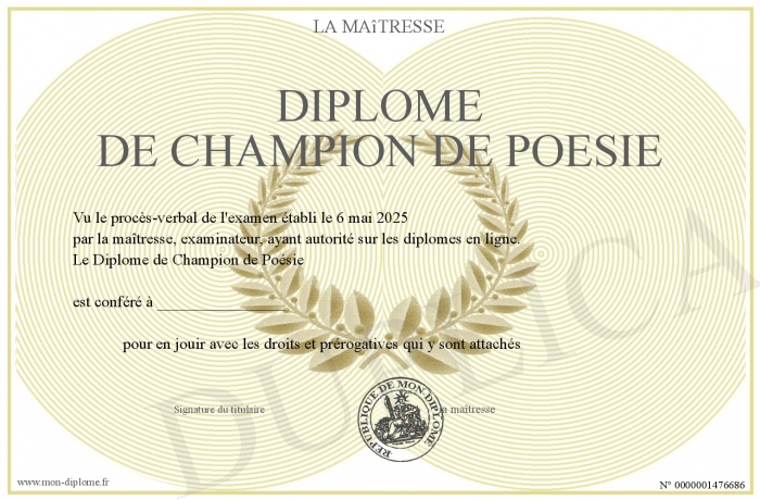 Envoyez par email votre Diplôme de Champion de Poésie personalisé