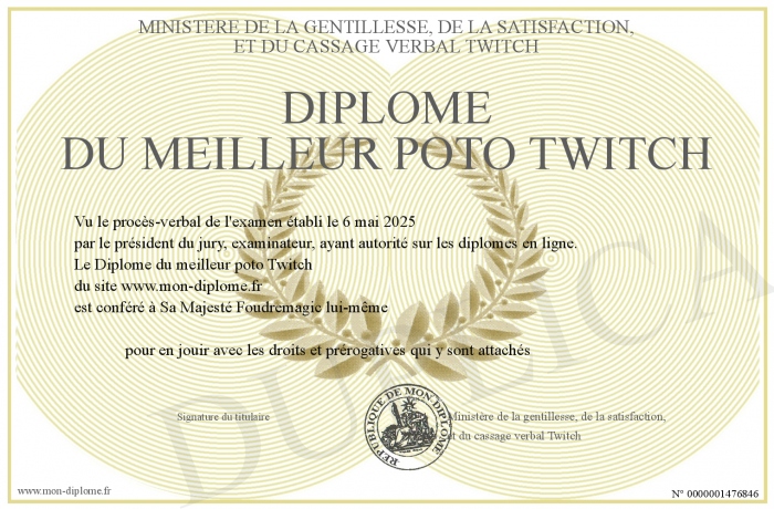 Envoyez par email votre Diplôme du meilleur poto Twitch personalisé