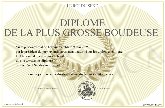 Envoyez par email votre Diplôme de la plus grosse boudeuse personalisé