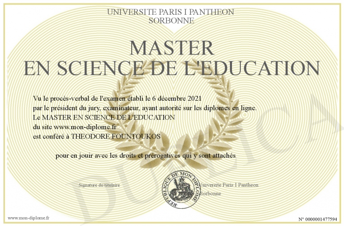 Envoyez par email votre MASTER EN SCIENCE DE L'EDUCATION personalisé