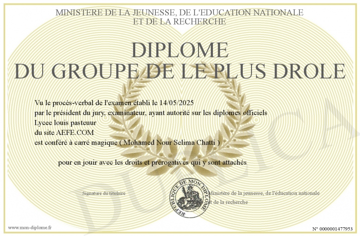 Envoyez par email votre Diplôme du groupe de le plus drole personalisé