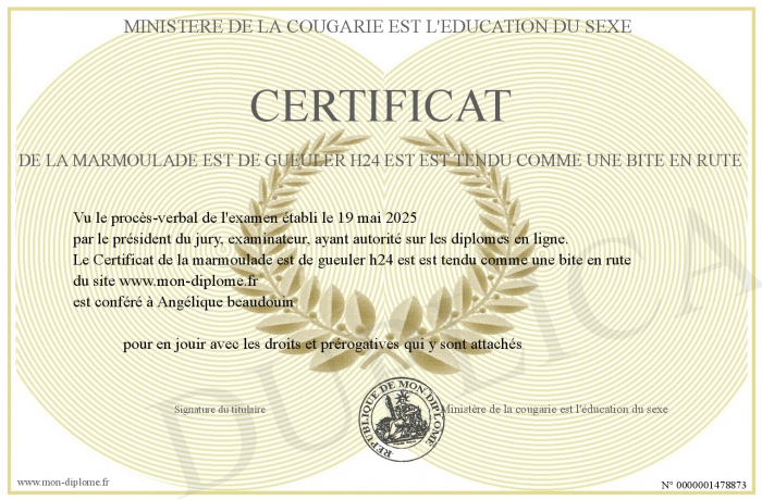 Envoyez par email votre Certificat de la marmoulade est de gueuler h24 est est tendu comme une bite en rute personalisé