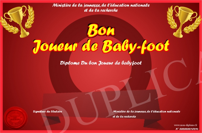 Envoyez par email votre Bon Joueur de Baby-foot personalisé