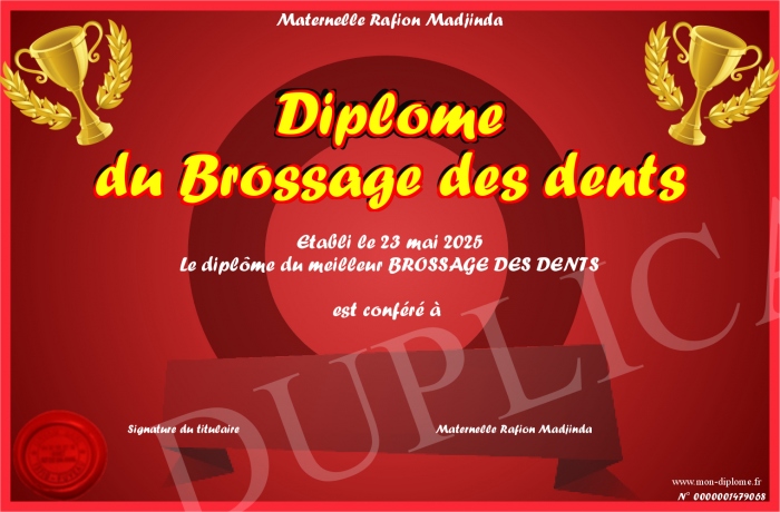 Envoyez par email votre Diplôme du Brossage des dents personalisé