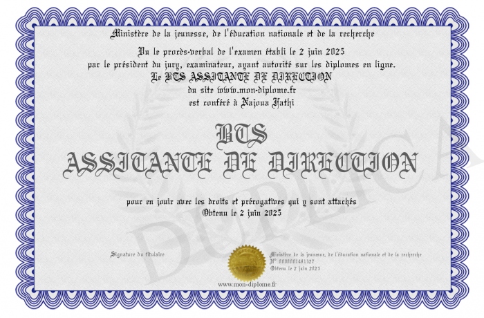 Envoyez par email votre BTS ASSITANTE DE DIRECTION personalisé