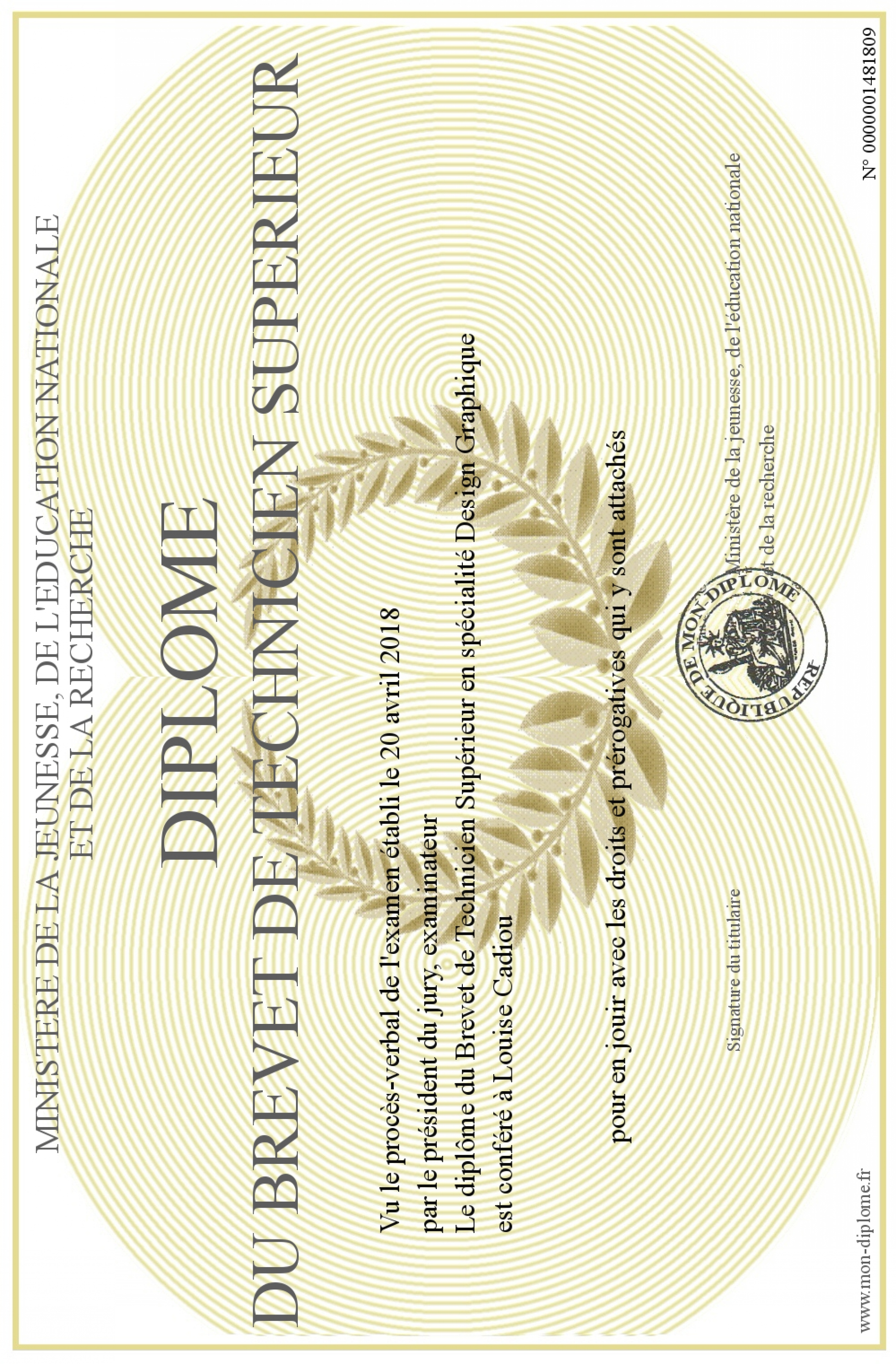 Envoyez par email votre Diplôme du brevet de technicien supérieur personalisé