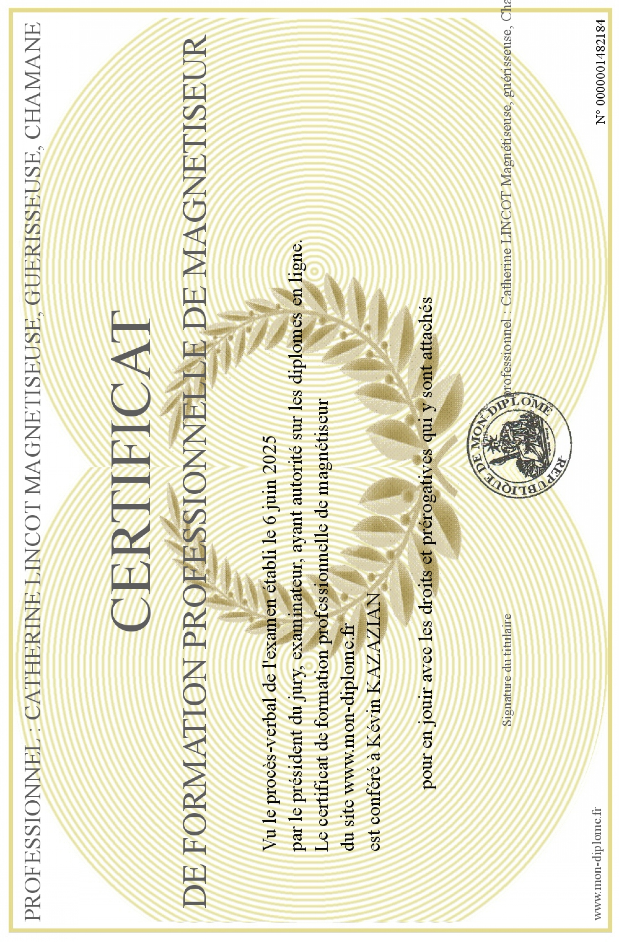 Envoyez par email votre certificat de formation professionnelle de magnétiseur personalisé
