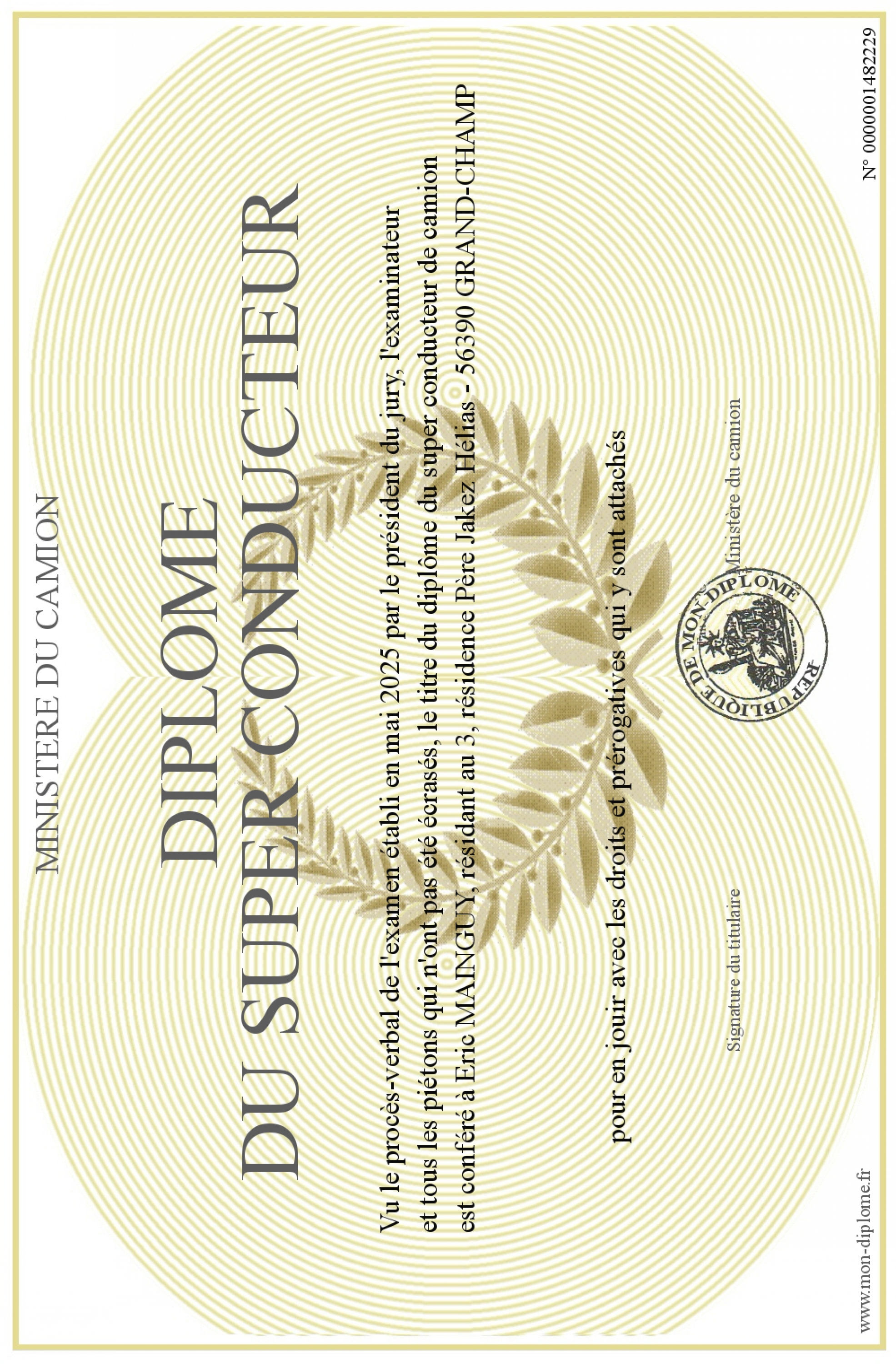 Envoyez par email votre Diplôme du super conducteur personalisé