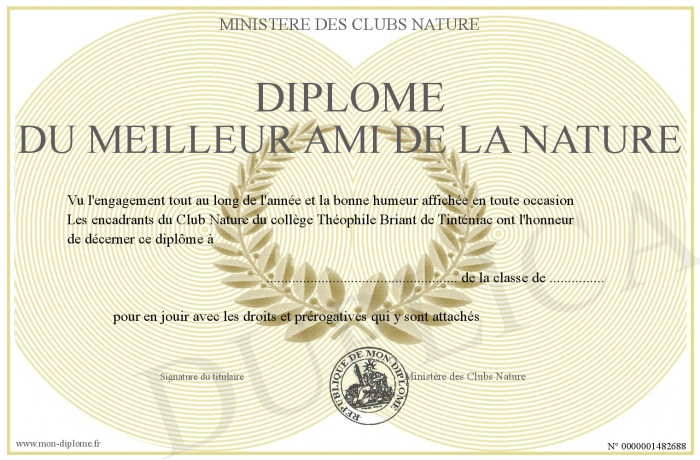 Envoyez par email votre Diplôme du meilleur ami de la nature personalisé