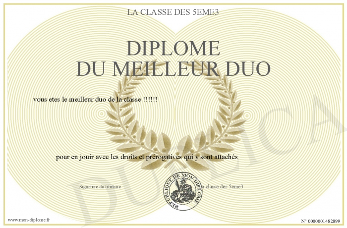 Envoyez par email votre Diplôme du meilleur duo personalisé