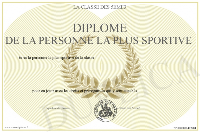 Envoyez par email votre Diplôme de la personne la plus sportive personalisé