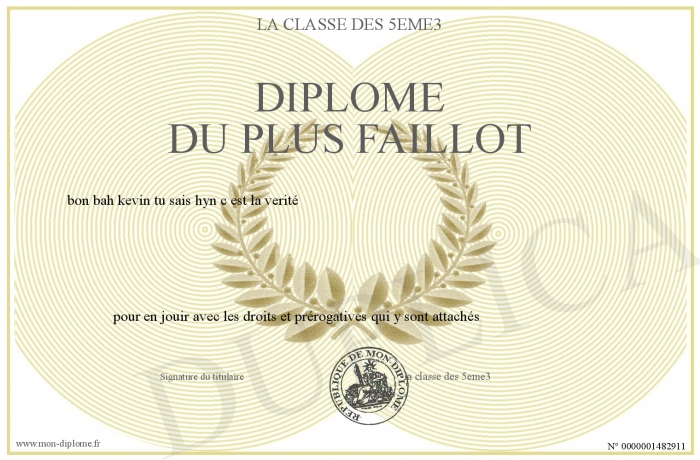 Envoyez par email votre Diplôme du plus faillot personalisé