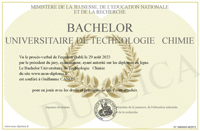 Envoyez par email votre Bachelor Universitaire de Technologie Chimie personalisé