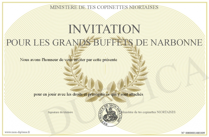 Envoyez par email votre Invitation pour les Grands Buffets de NARBONNE personalisé