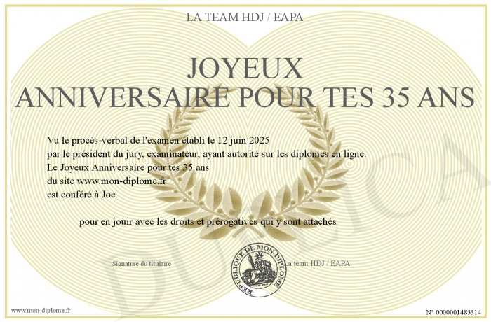 Envoyez par email votre Joyeux Anniversaire pour tes 35 ans personalisé
