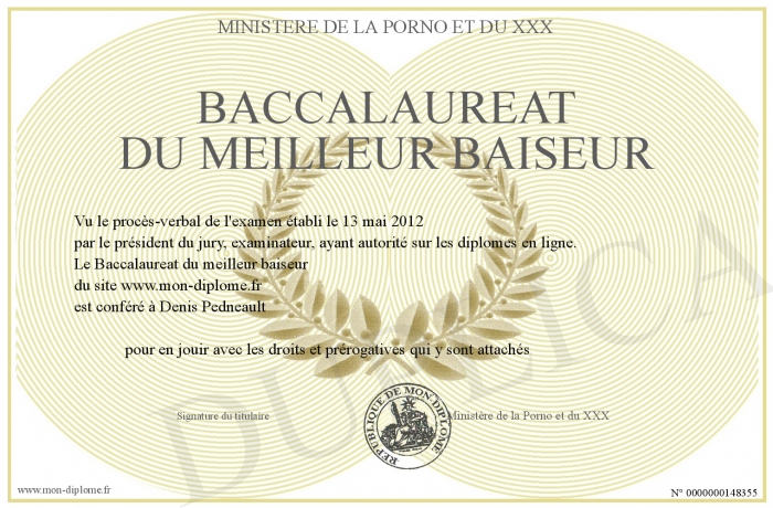 Envoyez par email votre Baccalaureat du meilleur baiseur personalisé