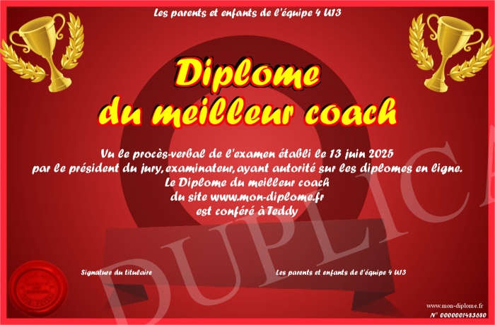 Envoyez par email votre Diplôme du meilleur coach personalisé