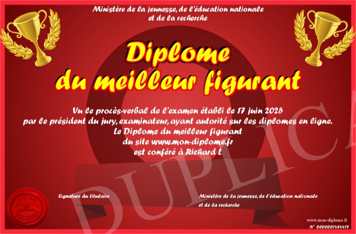 Envoyez par email votre Diplôme du meilleur figurant personalisé
