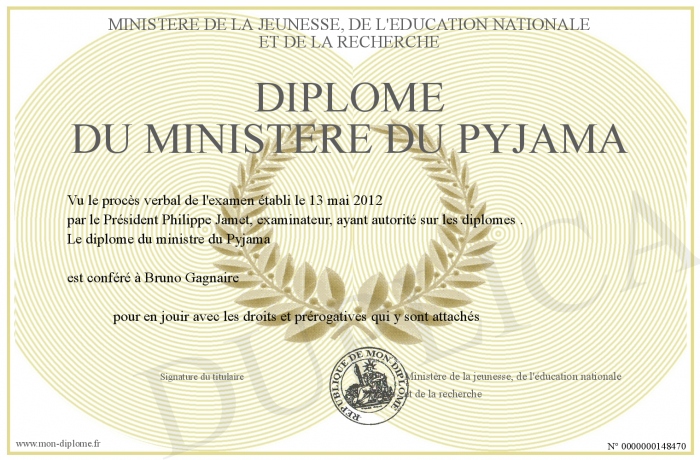 Envoyez par email votre Diplôme du ministère du Pyjama personalisé