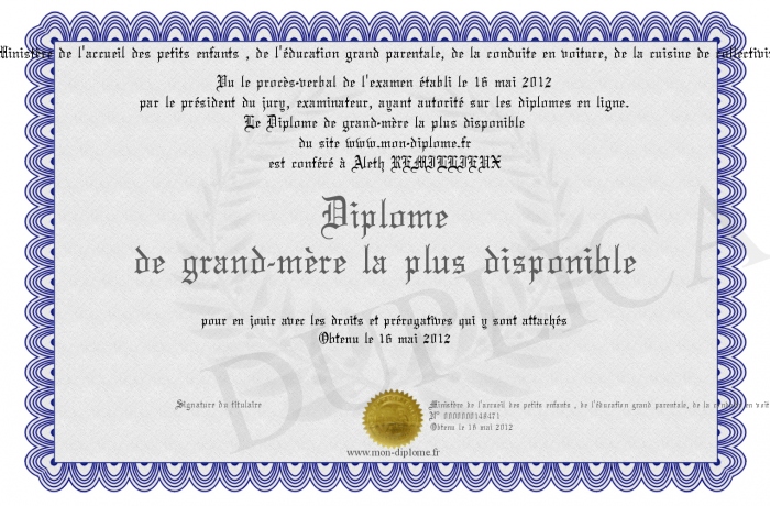 Envoyez par email votre Diplôme de grand-mère la plus disponible personalisé