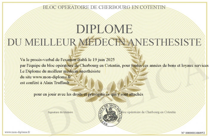 Envoyez par email votre Diplôme du meilleur médecin anesthésiste personalisé