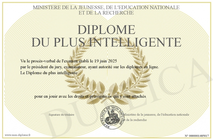 Envoyez par email votre Diplôme du plus intelligente personalisé