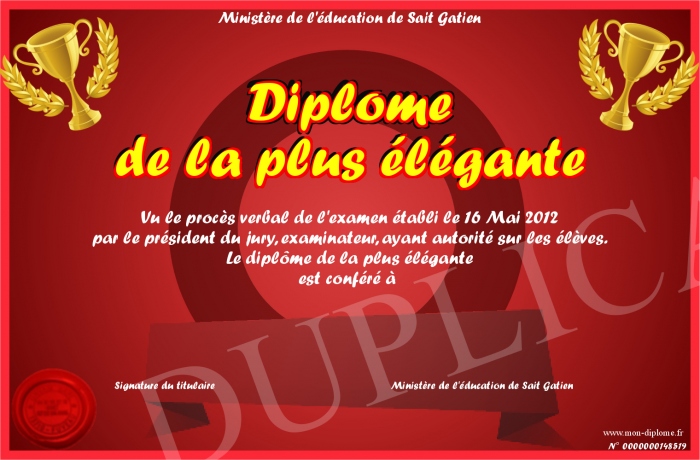 Envoyez par email votre Diplome de la plus élégante personalisé