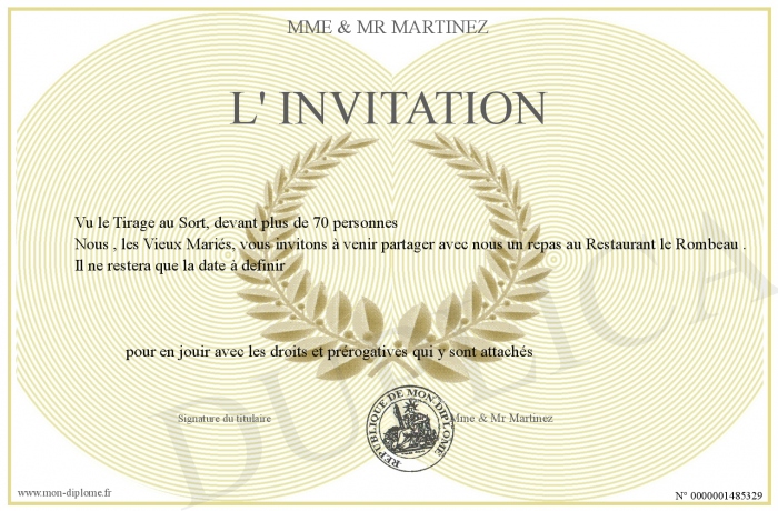 Envoyez par email votre L' Invitation personalisé