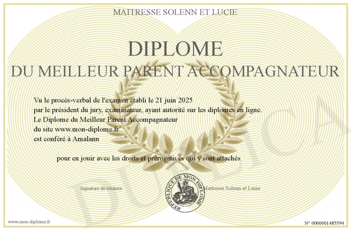 Envoyez par email votre Diplôme du Meilleur Parent Accompagnateur personalisé