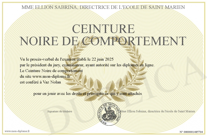 Envoyez par email votre Ceinture Noire de comportement personalisé