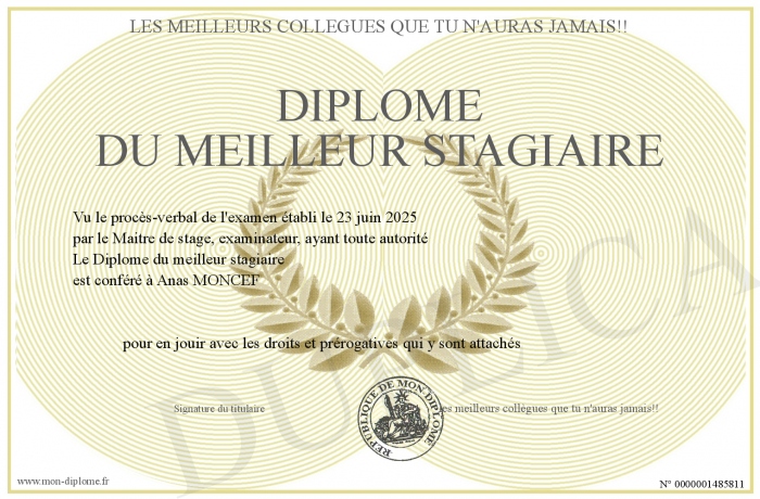 Envoyez par email votre Diplôme du meilleur stagiaire personalisé