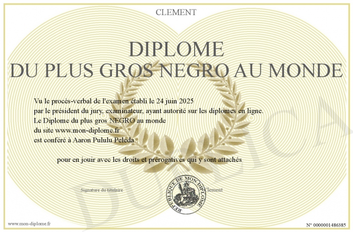 Envoyez par email votre Diplôme du plus gros NEGRO au monde personalisé