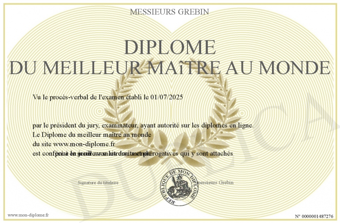 Envoyez par email votre Diplôme du meilleur maître au monde personalisé