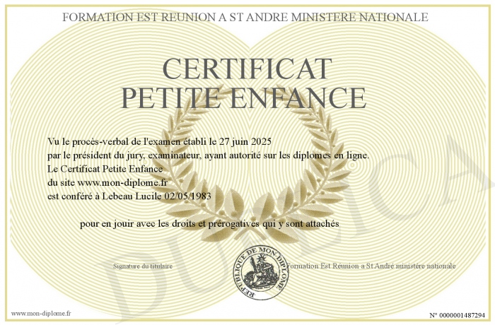 Envoyez par email votre Certificat Petite Enfance personalisé