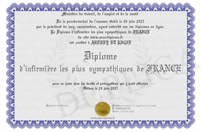 Envoyez par email votre Diplôme d'infirmière les plus sympathiques de FRANCE personalisé