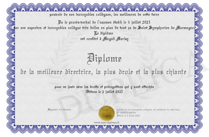 Envoyez par email votre Diplôme de la meilleure directrice, la plus drôle et la plus chiante personalisé