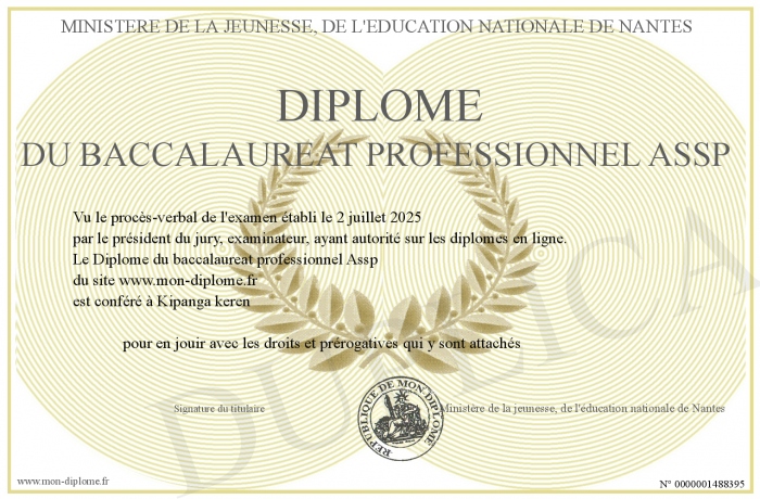 Envoyez par email votre Diplôme du baccalaureat professionnel Assp personalisé