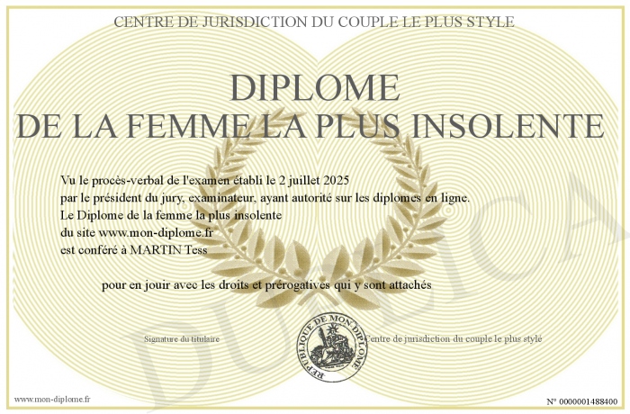 Envoyez par email votre Diplôme de la femme la plus insolente personalisé