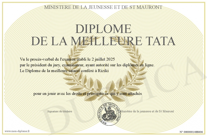 Envoyez par email votre Diplôme de la meilleure tata personalisé