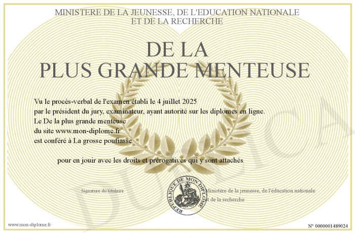 Envoyez par email votre De la plus grande menteuse personalisé